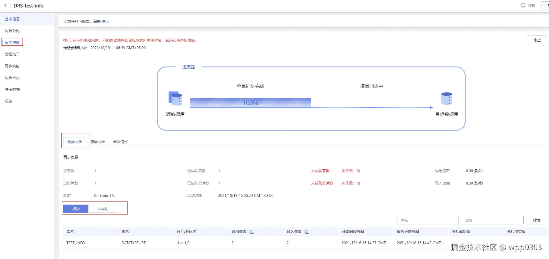 - 全量迁移完成后自动进入增量同步,从全量迁移开始抽取的位点开始回放。