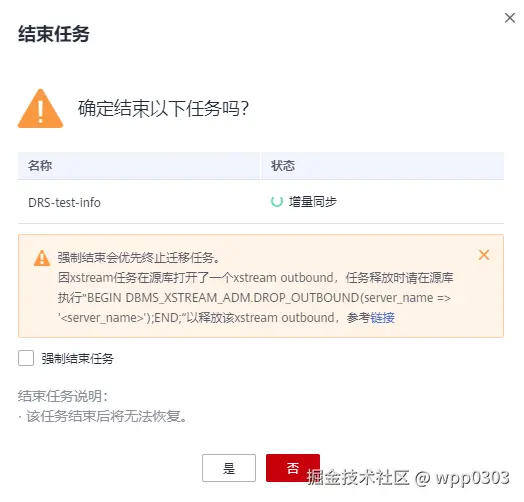 根据业务情况,待业务完全迁移至目标库,可以结束当前任务。