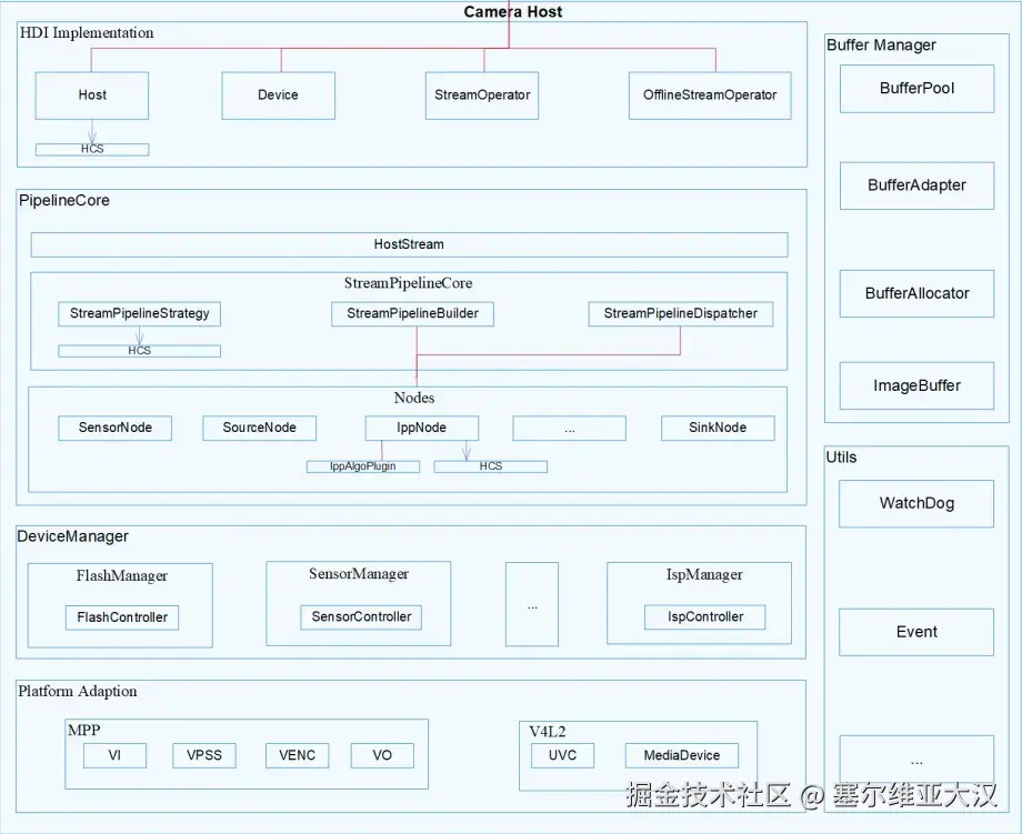 Camera host驱动实现 代码路径:drivers/peripheral/camera/interfaces/hdi_ipc/server/src/camera_host_driver.cpp