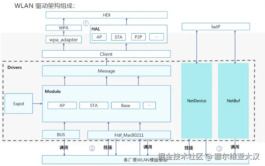 - HDI Implementation:对上实现HDI接口,向下调用框架层的接口,完成HDI接口任务的转发。