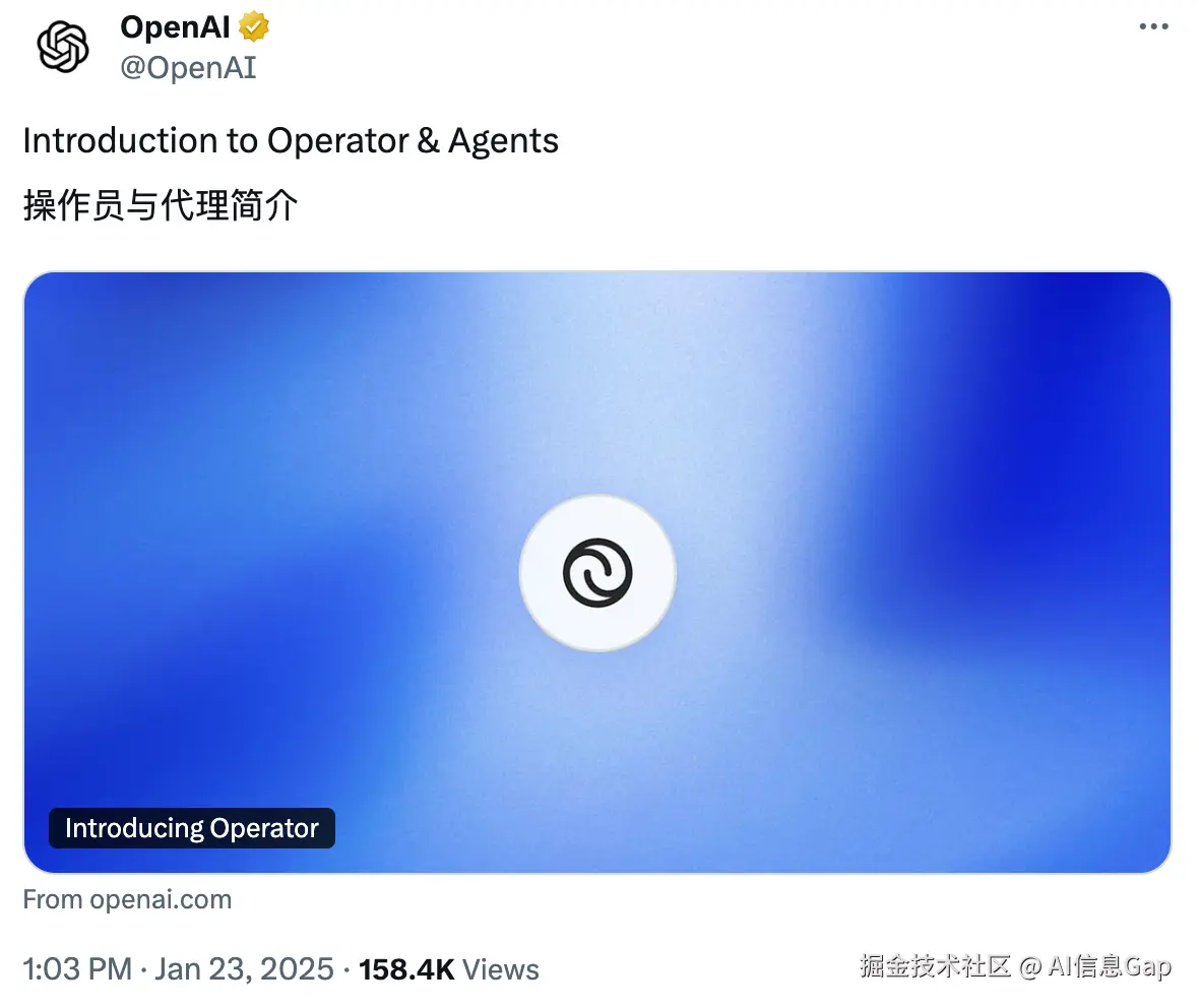 北美时间1月23日,OpenAI官宣Operator Agent正式发布。文末附Operator直播发布视频完整版。