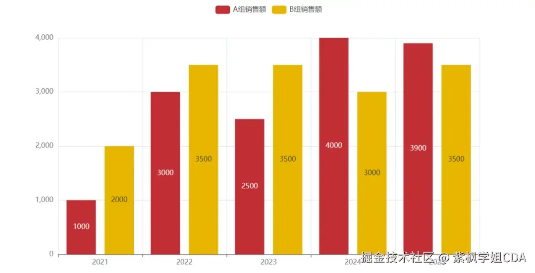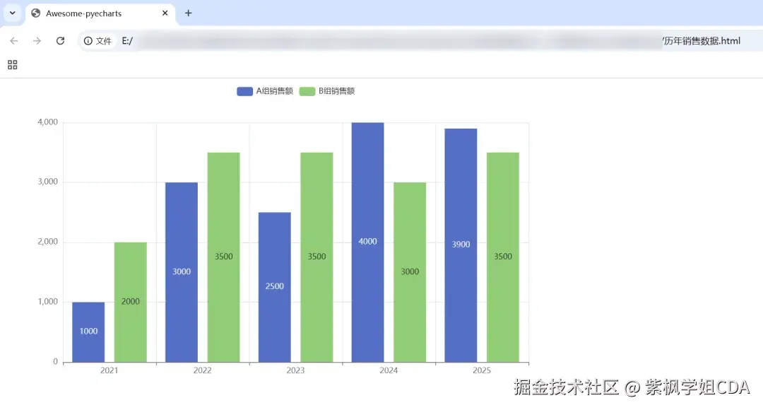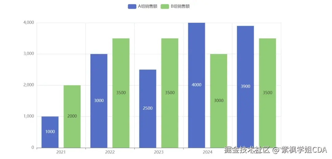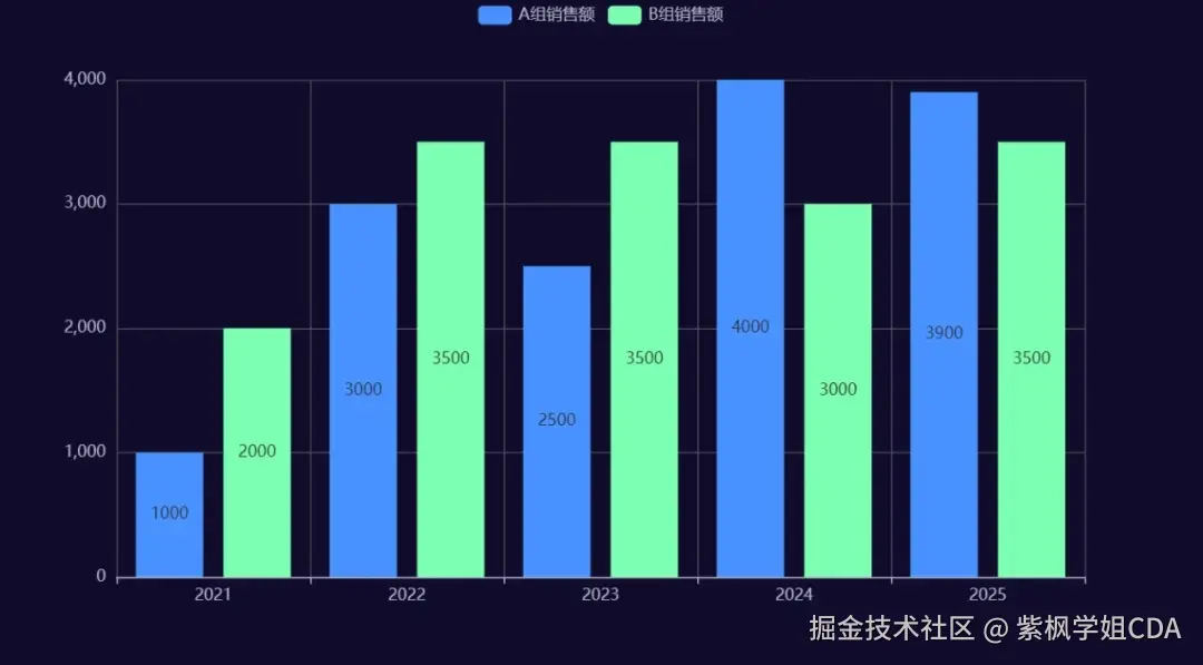 bar.add_yaxis("A组销售额",y_axis=[1000,3000,2500,4000,3900])