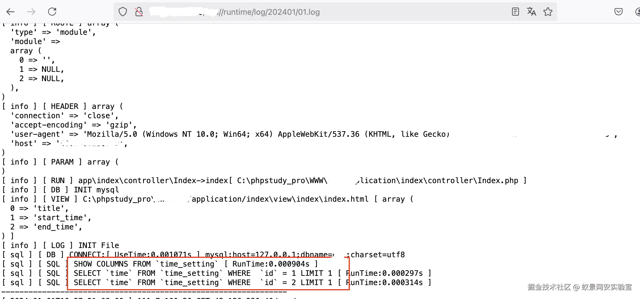 但我发现在日志中泄露了sql语句,貌似可以寻找对应接口,参数拼接成数据包尝试sql注入,但我找遍了日志都没有发现可以直接使用的接口或者代入了sql语句的参数。