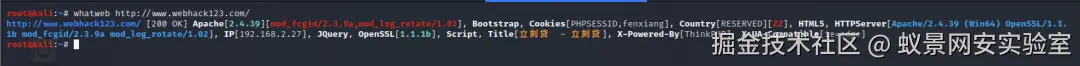 这篇文章就是利用kali自带工具whatweb探测出thinkphp框架: