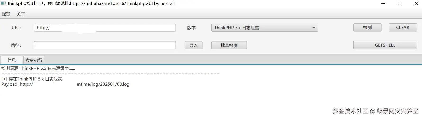 我检查js信息尝试调试js绕过,没成功就通过报错发现为thinkphp框架,直接上工具一把梭。