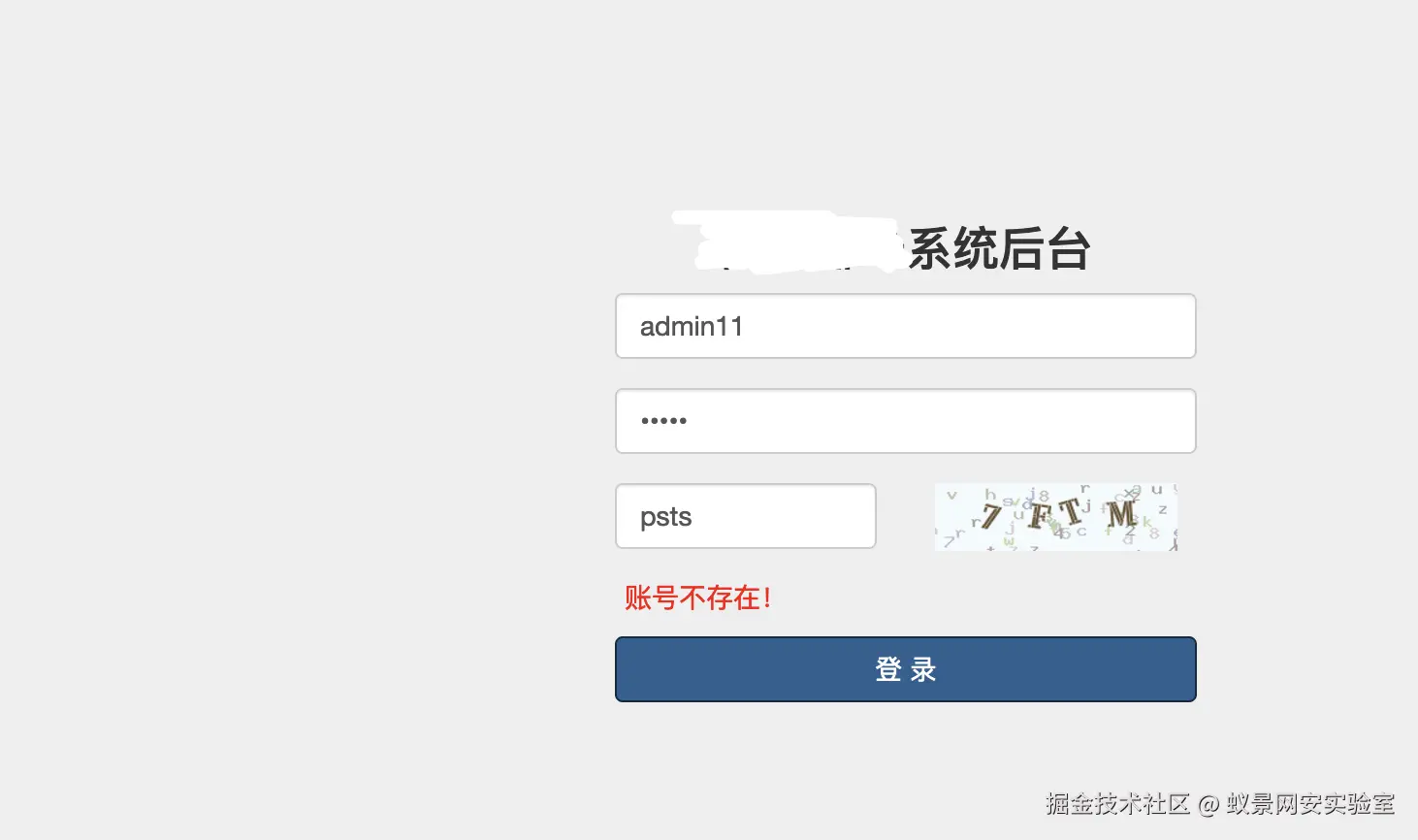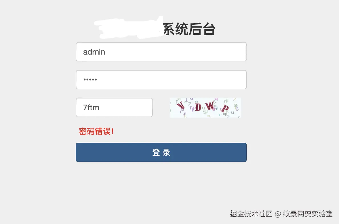 不过根据找到的其它js路径发现其目录结构基本拼接在/syl/下,于是根据经验在目录后拼接admin,系统跳转到后台管理员登陆界面,输入账户为admin页面显示密码错误,输入其它账户页面显示账号不存在,可知账户为admin。