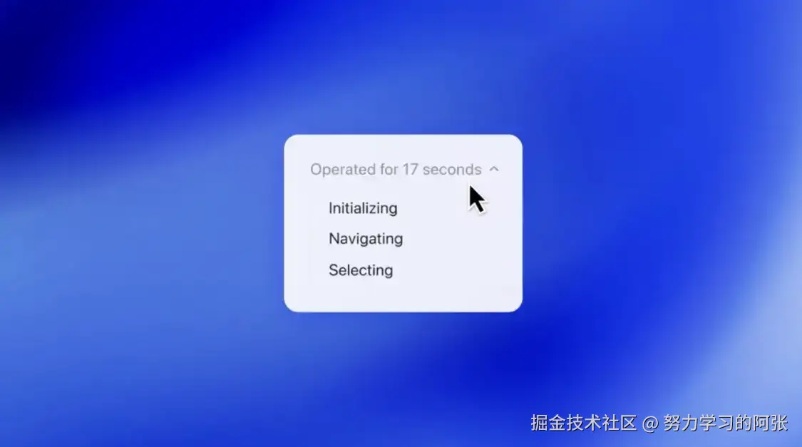 简单来说,当用户启用 Operator 时,系统会弹出一个小窗口,展示专用 Web 浏览器的操作界面,并实时说明正在执行的任务。在此期间,允许用户随时接管控制。
