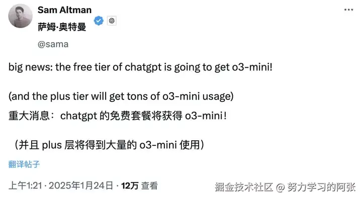 一个是 ChatGPT 用户不仅将获得 o3-mini 的免费试用机会,Plus 付费订阅会员还将享有更多使用额度。