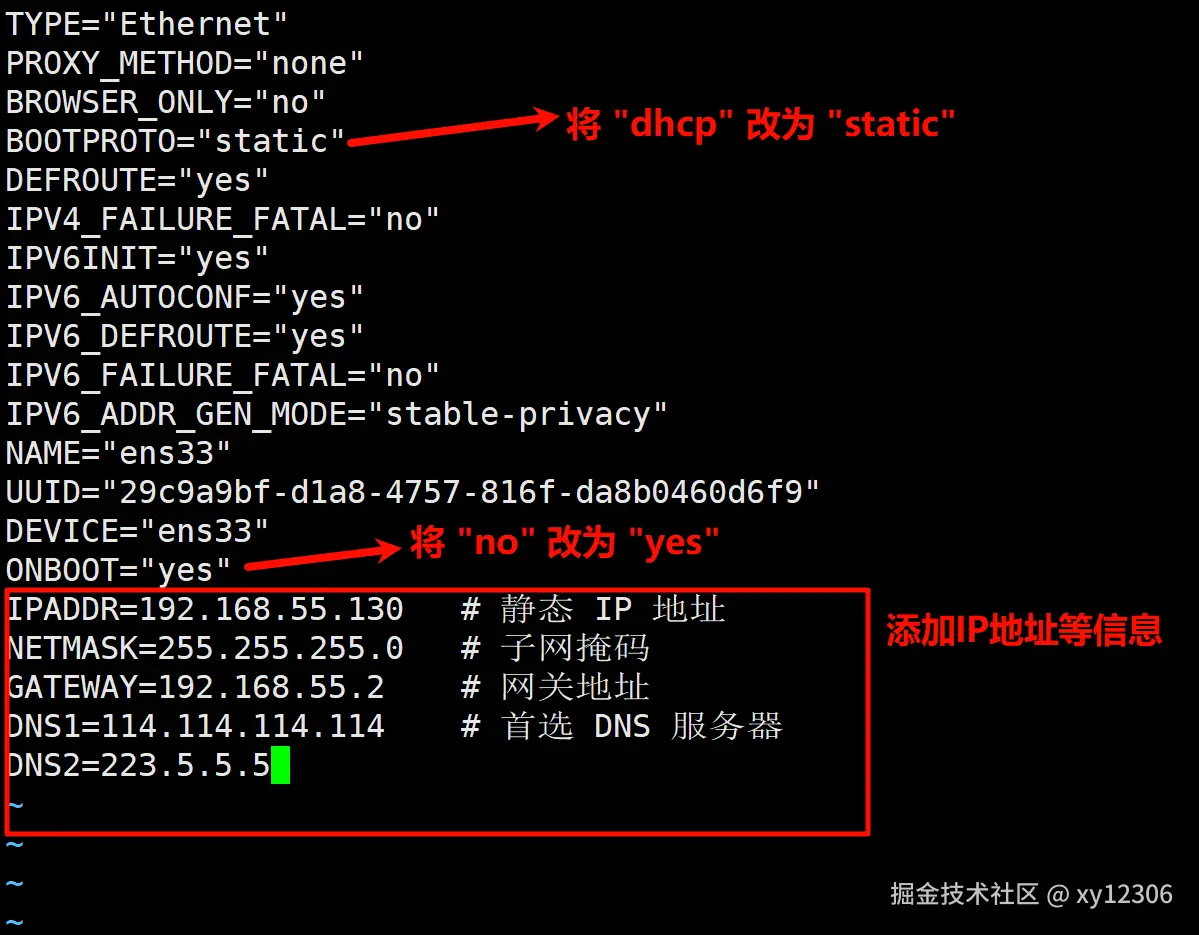 sudo vim /etc/sysconfig/network-scripts/ifcfg-ens33