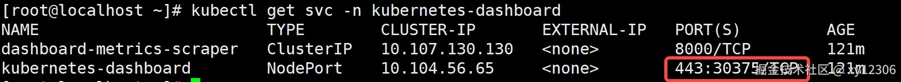 kubectl get svc -n kubernetes-dashboard