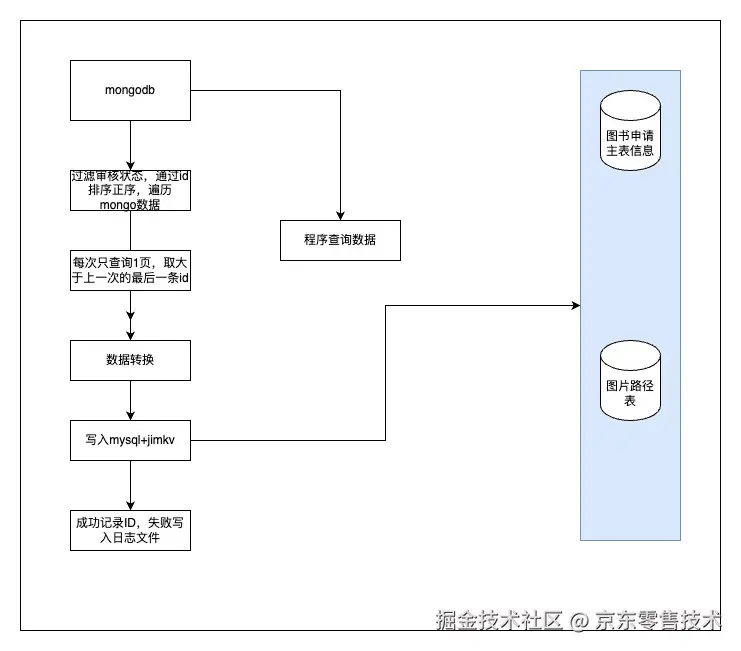 考虑整体的数据量并不大单表300w,通过大数据离线表的方式效率并不高,通过代码更加的灵活,可以随时调整速度和范围存量数据分了两部分1、已经审核通过,申请单不会在有任何变更,可以随时迁移,比对2、申请单处于过程中的数据,数据随时会变更。凌晨迁移,打开双写