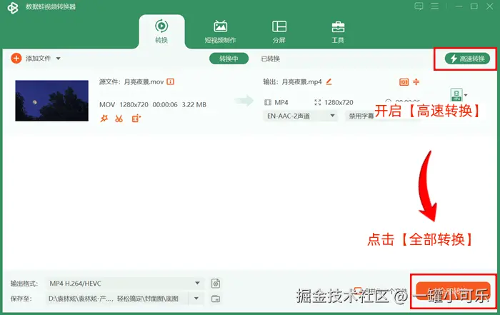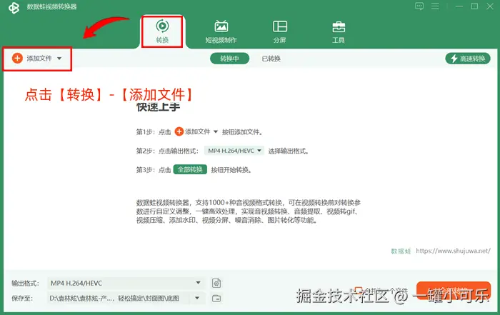 数据 蛙视频转换器可以说是一个功能非常强大的MP4转换器,它能够将1000多种不同的视频格式转换成MP4格式,并且提供了极速转换技术,能够最大程度上实现高速无损的格式转换,适合需要快速处理视频文件以及对视频质量要求极高的用户。此外,它还兼容Windows和Mac系统,支持批量转换功能,提高工作效率。以下是具体的MP4格式转换步骤。