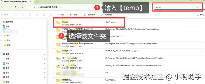 除了在软件里可以找到误删数据表格的备份,在电脑里我们也能够尝试找到副本,例如电脑硬盘里面的【临时文件夹】。表格误删数据保存关闭后如何恢复?excel数据丢失了怎样恢复?尝试在【此电脑】中搜索【temp】,找到同名文件夹后点进去,有可能找到误删数据的表格副本。