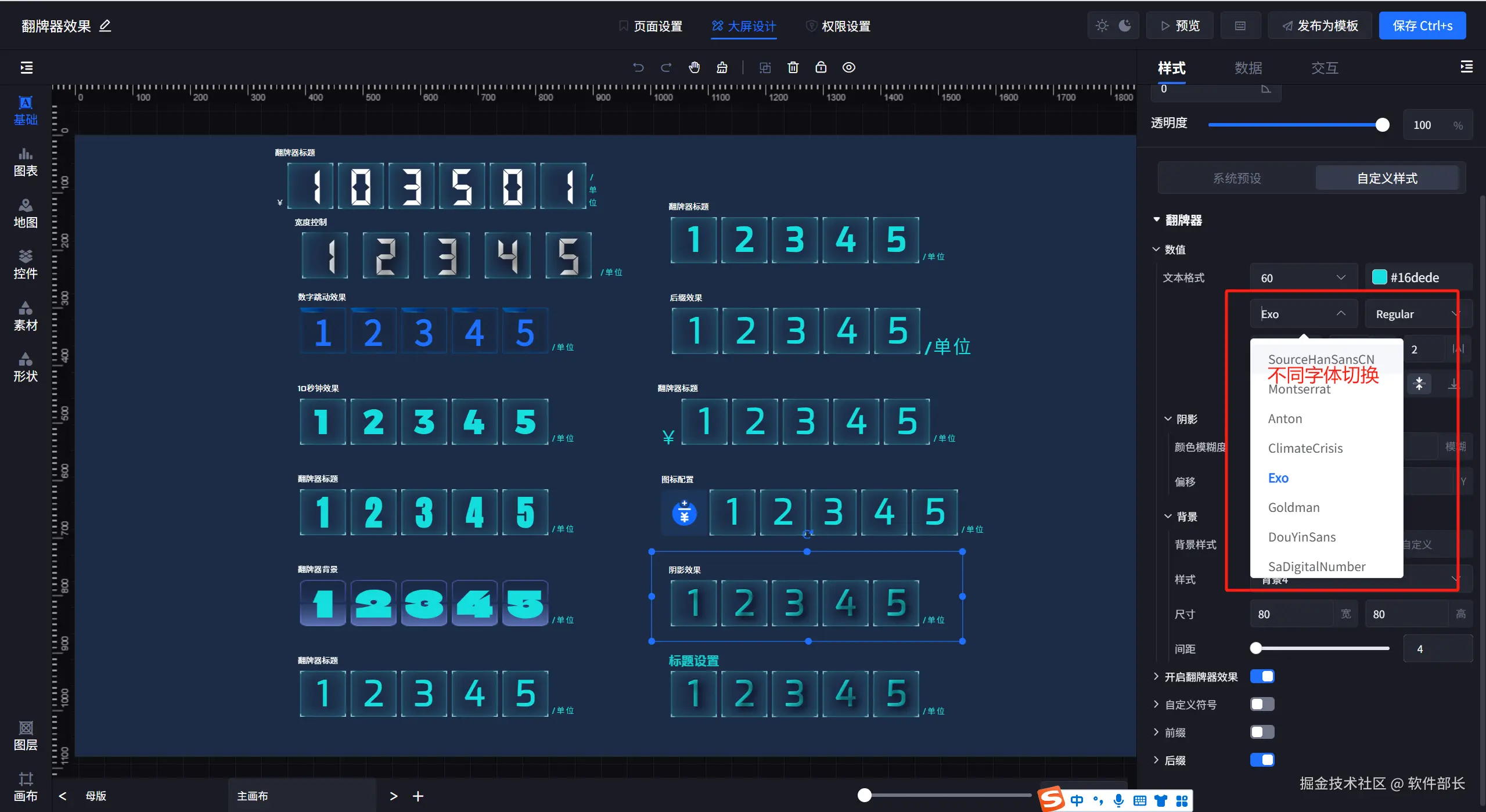 设置背景样式,可以设置背景不一样的图片(系统提供了部分内置效果,也可以上传图片),数字之间的间距,数字的大小尺寸等