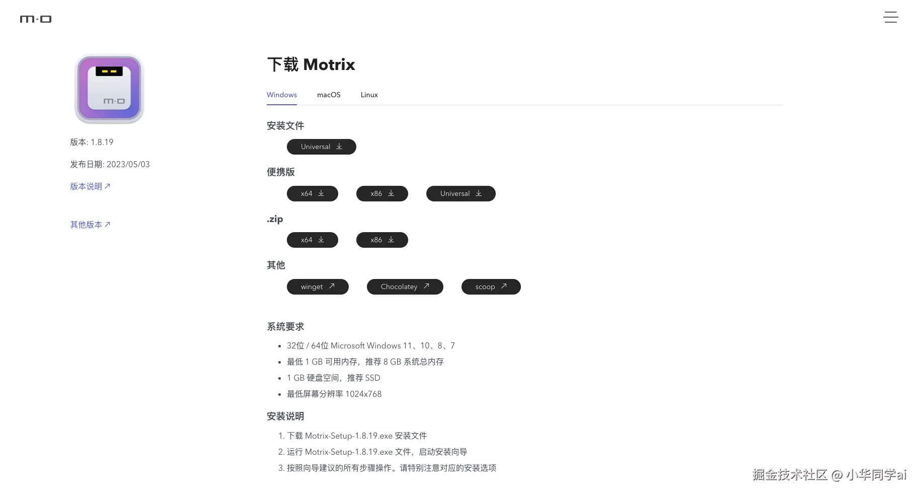 - Windows:推荐使用安装包(Motrix-Setup-x.y.z.exe)进行安装,以确保完整体验。