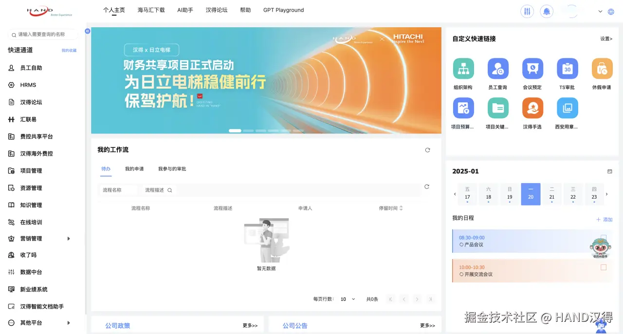 在本次项目中,汉得大数据运营团队与零衍产品研发团队紧密合作,共同完成了PC端和移动端门户的开发,成功构建了一个集高效性、安全性与用户体验于一体的企业门户。