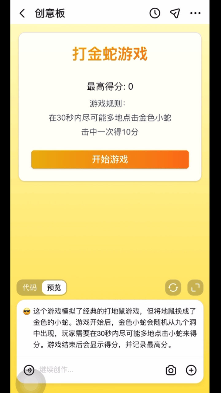 创意板绝对是零门槛,能把你的创意全自动转化为代码,再帮你运行。