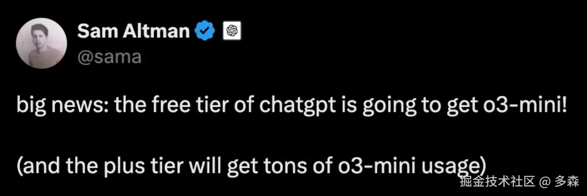 但目前只有Pro美国用户才能体验,为了弥补这一遗憾,奥特曼提前剧透: o3-mini将可在官网中免费使用,Plus用户会有更多用量。