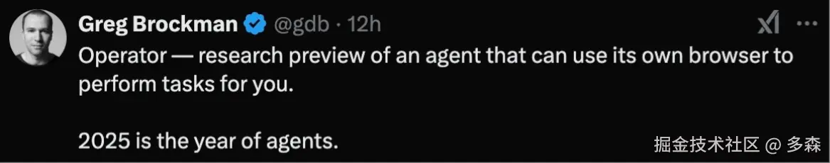 此外,OpenAI联创兼总裁Greg,再一次强调:「2025年,就是智能体之年」