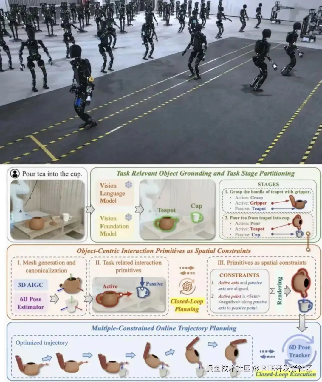 1 月 23 日,智元机器人与北京大学联合实验室宣布,推出通用机器人操作框架「OmniManip」。据了解,智元机器人与北京大学联合实验室为解决「视觉语⾔基础模型(VLMs)如何应⽤于机器⼈,以实现通⽤操作」这一具身智能领域的难题,携⼿提出了「OmniManip」架构。「OmniManip」基于以对象为中⼼的 3D 交互基元,将 VLM 的高层次推理能力转化为机器⼈的低层次高精度动作。针对⼤模型幻觉问题和真实环境操作的不确定性,OmniManip 创新性地引⼊了 VLM 规划和机器⼈执⾏的双闭环系统设计,实现了操作性能的显著突破。