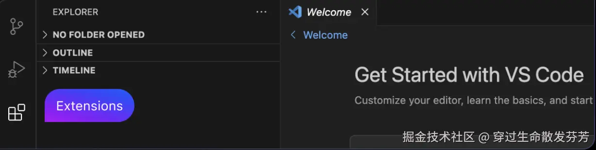 安装 Visual Studio Code 后,左侧导航栏上点击扩展,打开扩展窗口。