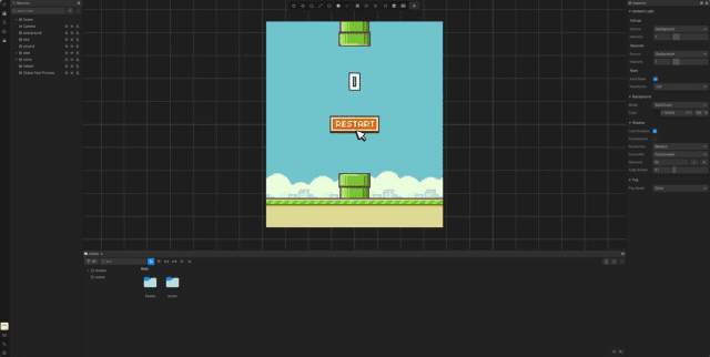 用户可以在新的项目导出面板中选择“微信小游戏”后点击将工程下载到本地,然后导入到微信开发者工具即可预览调试,下面是“像素小鸟”游戏导出到微信小游戏的演示。其他小游戏、小程序的支持也会后续尽快迭代,敬请期待!