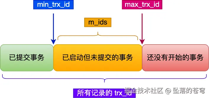 min_trx_id和max_trx_id之间,需要判断 trx_id 是否在 m_ids 列表中:- 如果记录的 trx_id 在