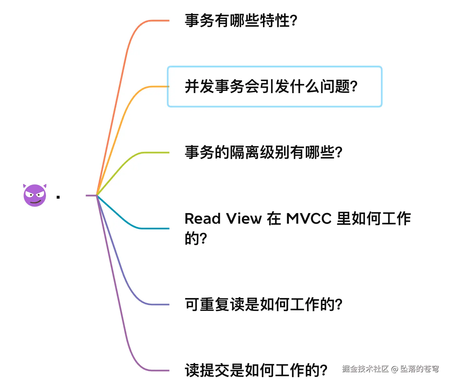 事务是在 MySQL 引擎层实现的,我们常见的 InnoDB 引擎是支持事务的,事务的四大特性是原子性、一致性、隔离性、持久性,我们这次主要讲的是隔离性。