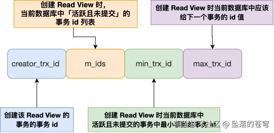 Read View 有四个重要的字段: