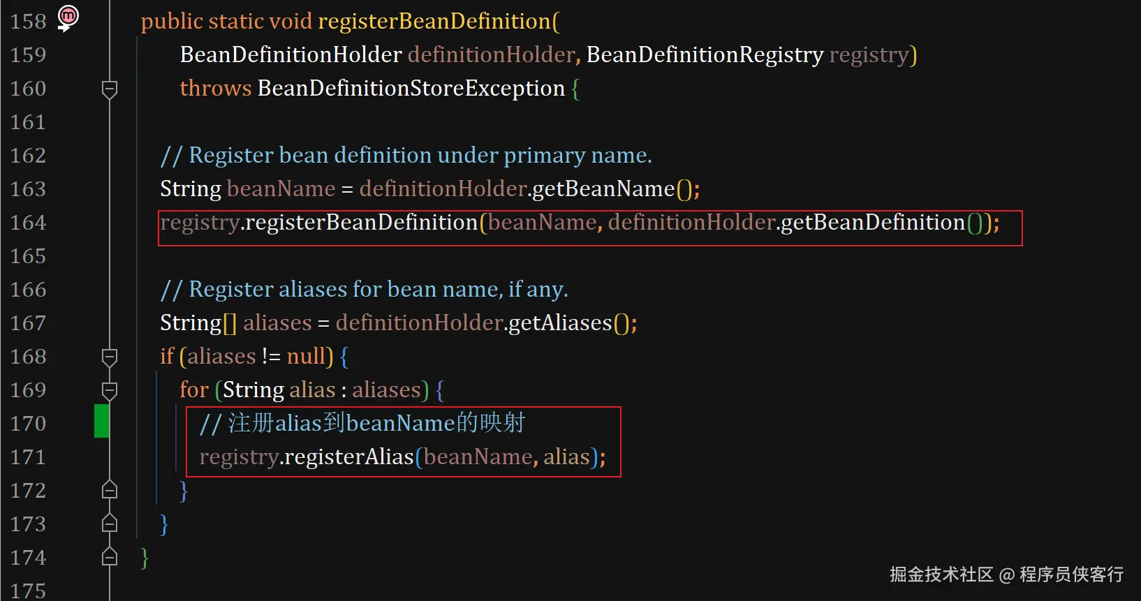 在BeanDefinitionReaderUtils#registerBeanDefinition中,