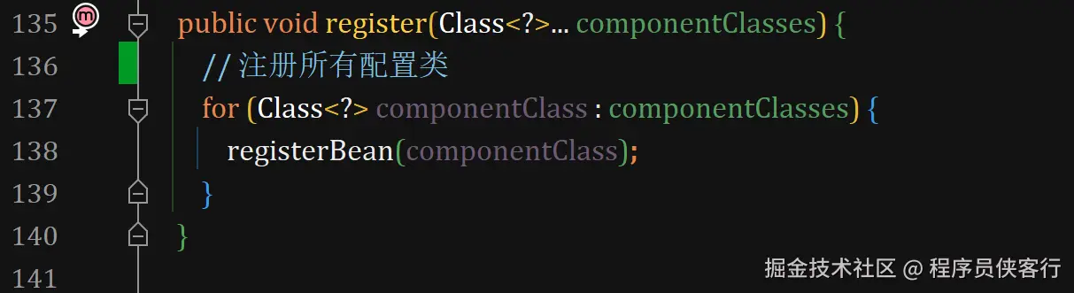 第二行代码register(componentClasses),显然是将配置类注册到容器中。