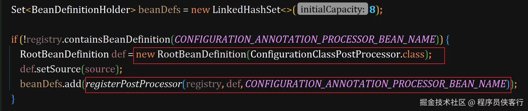 要用ConfigurationClassPostProcessor来处理配置类,Spring容器中就得先有该类的实例。那么,这个类是何时注册到容器中的?