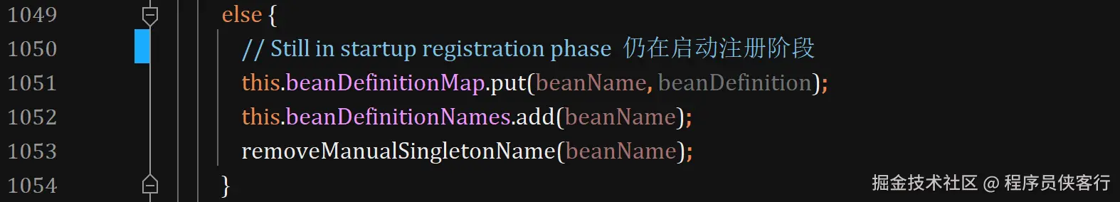 最终会调用DefaultListableBeanFactory#registerBeanDefinition方法,执行这几行代码: