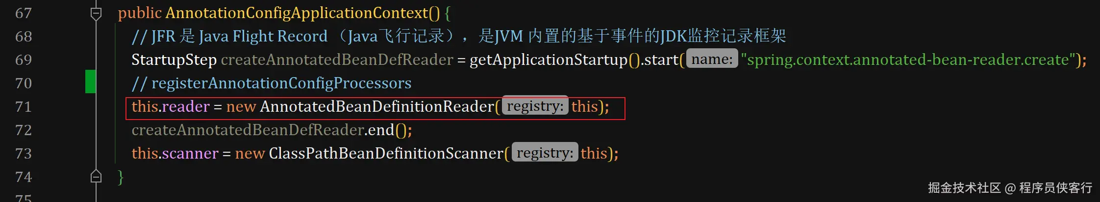 答案就在new AnnotatedBeanDefinitionReader(this)中:
