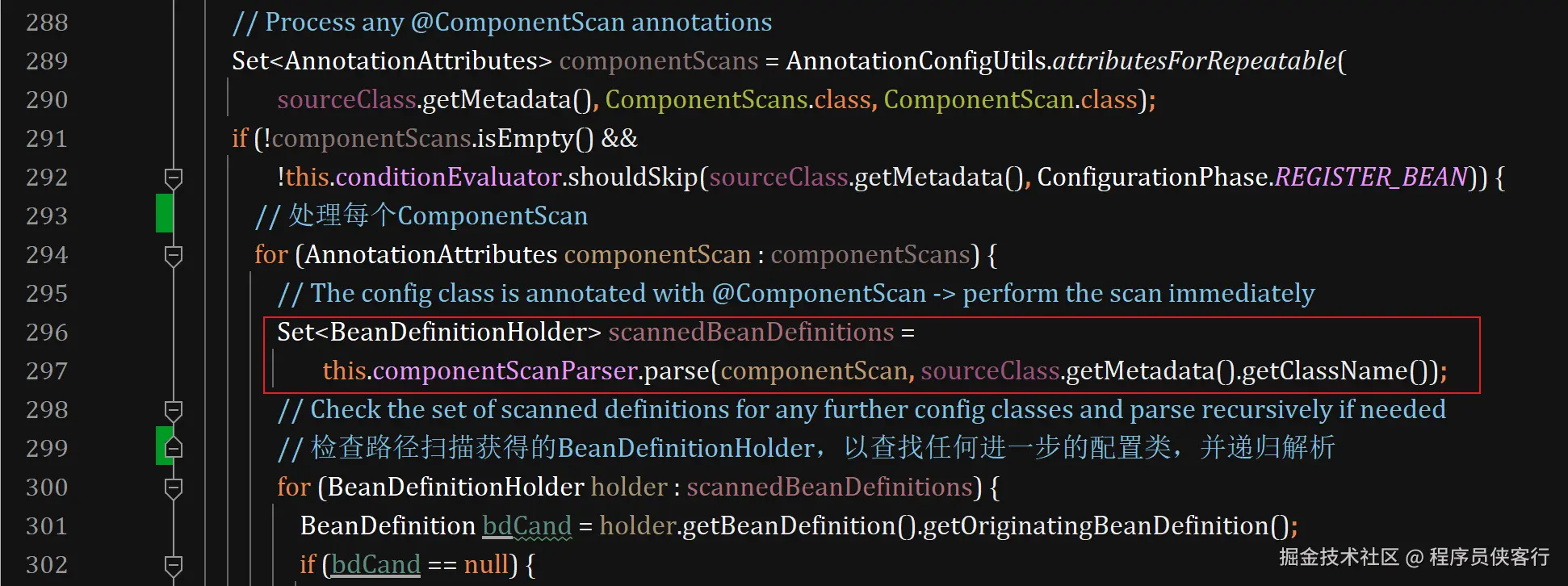 - 在ConfigurationClassParser#doProcessConfigurationClass中,解析@ComponentScan、@ComponentScans注解;
