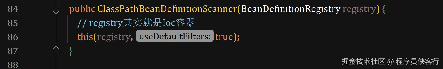 在创建ClassPathBeanDefinitionScanner对象时,指定了使用DefaultFilters:将扫描所有带有@Component注解的类。