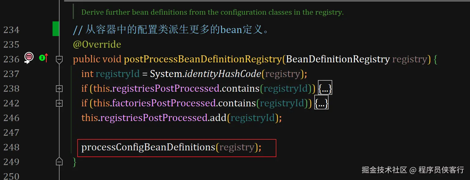 此时,ConfigurationClassPostProcessor#postProcessBeanDefinitionRegistry将被执行。