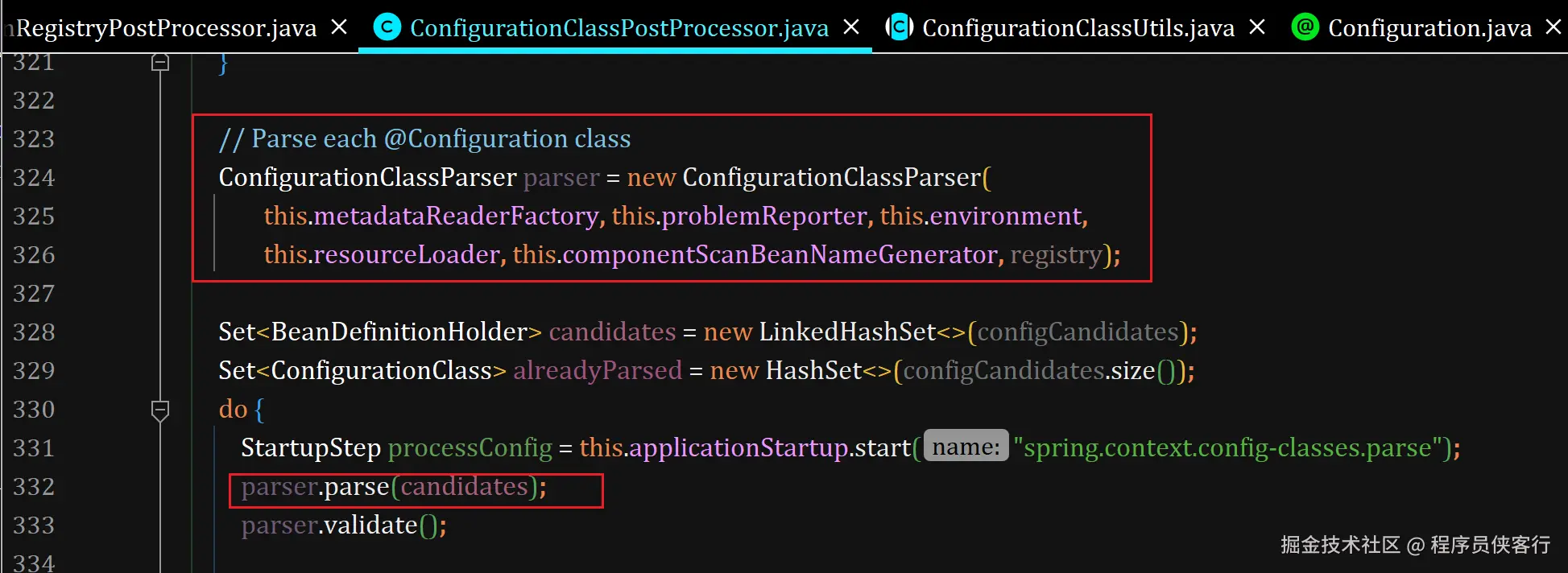 得到Set candidates后,会调用ConfigurationClassParser.parse()