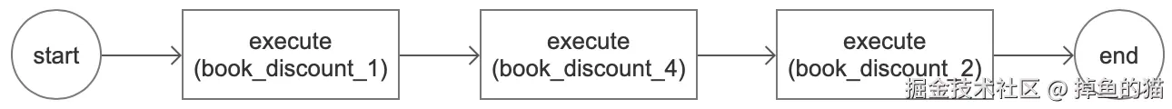 创建 bookDiscount.yml 文件,建立相应处理链(或者规则链)。链有3个节点, start 和 end 表示链条的开头与结尾,book_discount_1 为规则执行节点: