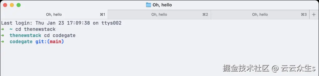 Ghostty还会设置那些快速标签,⌘1、⌘2和⌘3——这是一个不错的想法。请注意,Ghostty明智地继承了我的git颜色设置。