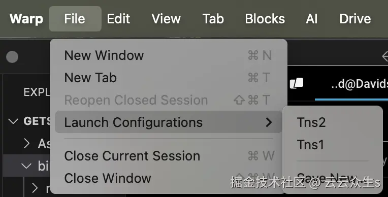 在Warp中,在几个标签中工作后,我可以命名并保存配置,或启动已命名的配置: