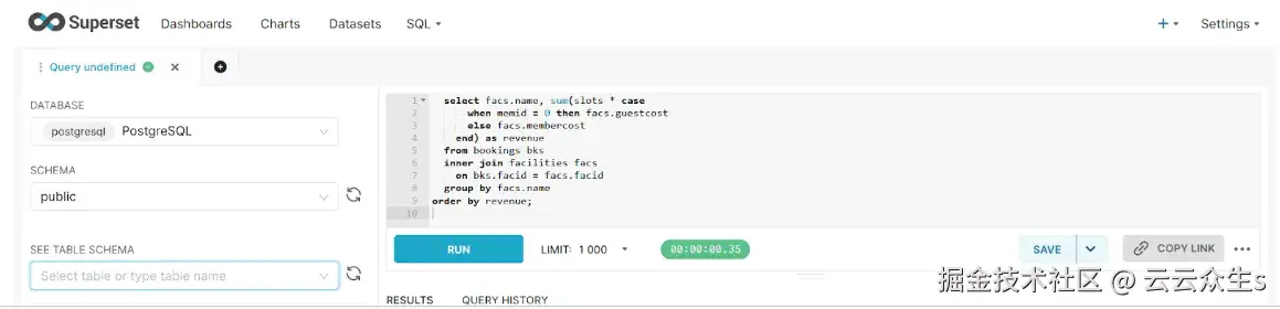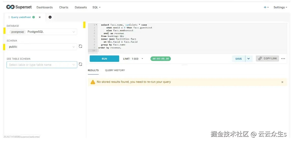 但是,如果您使用的是 SQL Lab,则没有此类限制。您可以编写 SQL 查询来连接多个表,只要您的数据库帐户有权访问这些表即可。