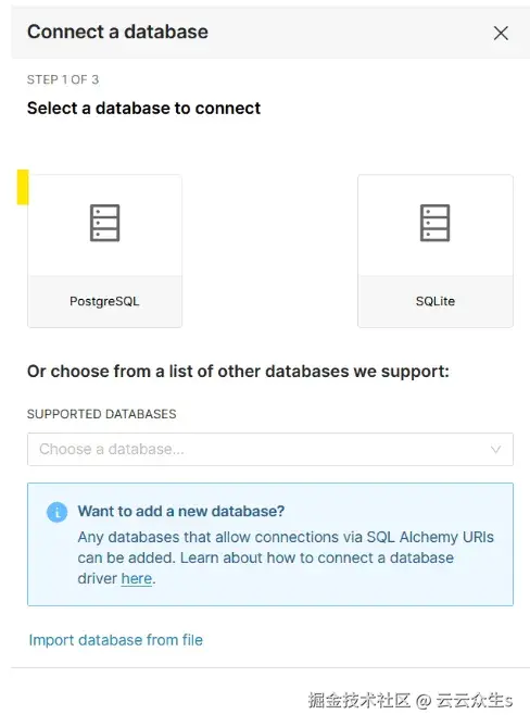选择PostgreSQL作为数据库。