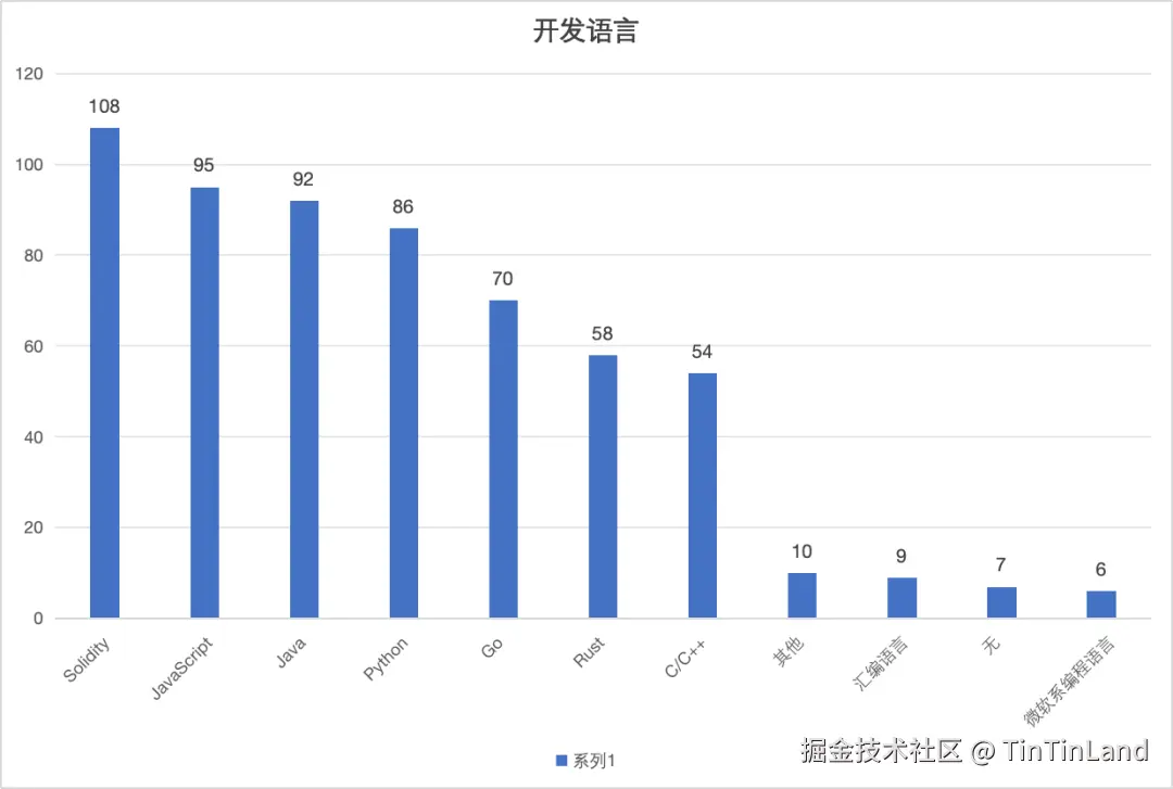 在拥有一定开发经验的学员中,掌握 Solidity 和 JavaScript 语言的用户最多,分别为 108 人和 95 人;掌握 Java、Python 和 Go 语言的学员也较多,分别为 92 人、86 人和 70 人 ,另外还有 58 人掌握 Rust 语言。丰富多元的开发语言学习技能为项目开发实战带来了有力支持。
