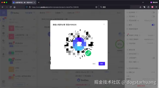 注意,如果你需要分享给外部的客户(不需要登录YesDev也能访问和查看最新项目进度),则需要经过“分享给客户”这个功能来做到。