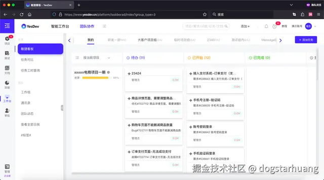 YesDev特别适合多项目并行管理的研发团队使用,在项目管理界面,你可以快速切换到当前活跃的项目,或项目集。如下,