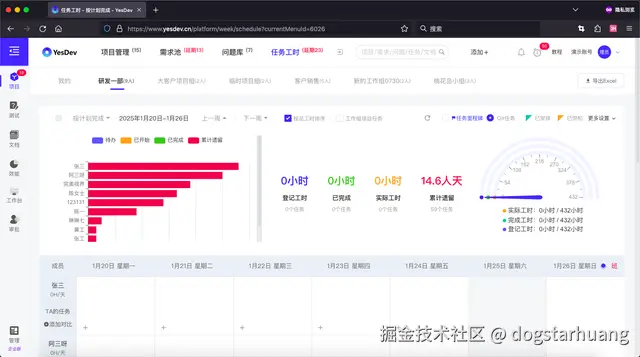 如果需要进一步更细致的拆解和协助,你和你的团队,可以使用YesDev的每周任务工时登记: