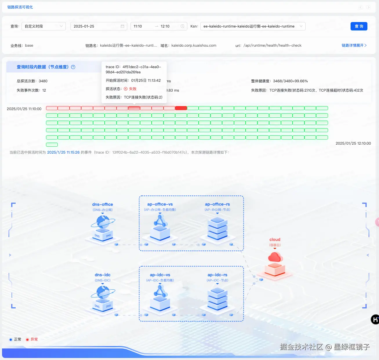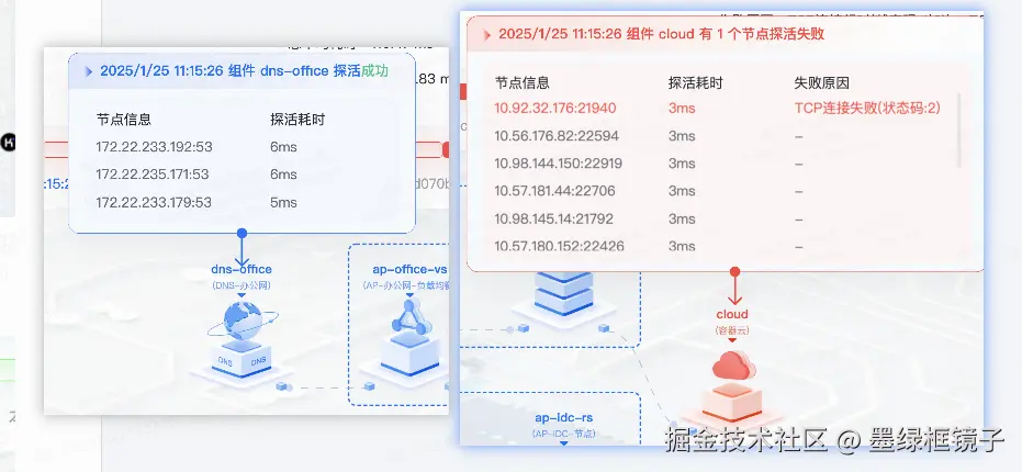 - 链路在探测过程中,如果出现异常,对应的小气泡则会变红