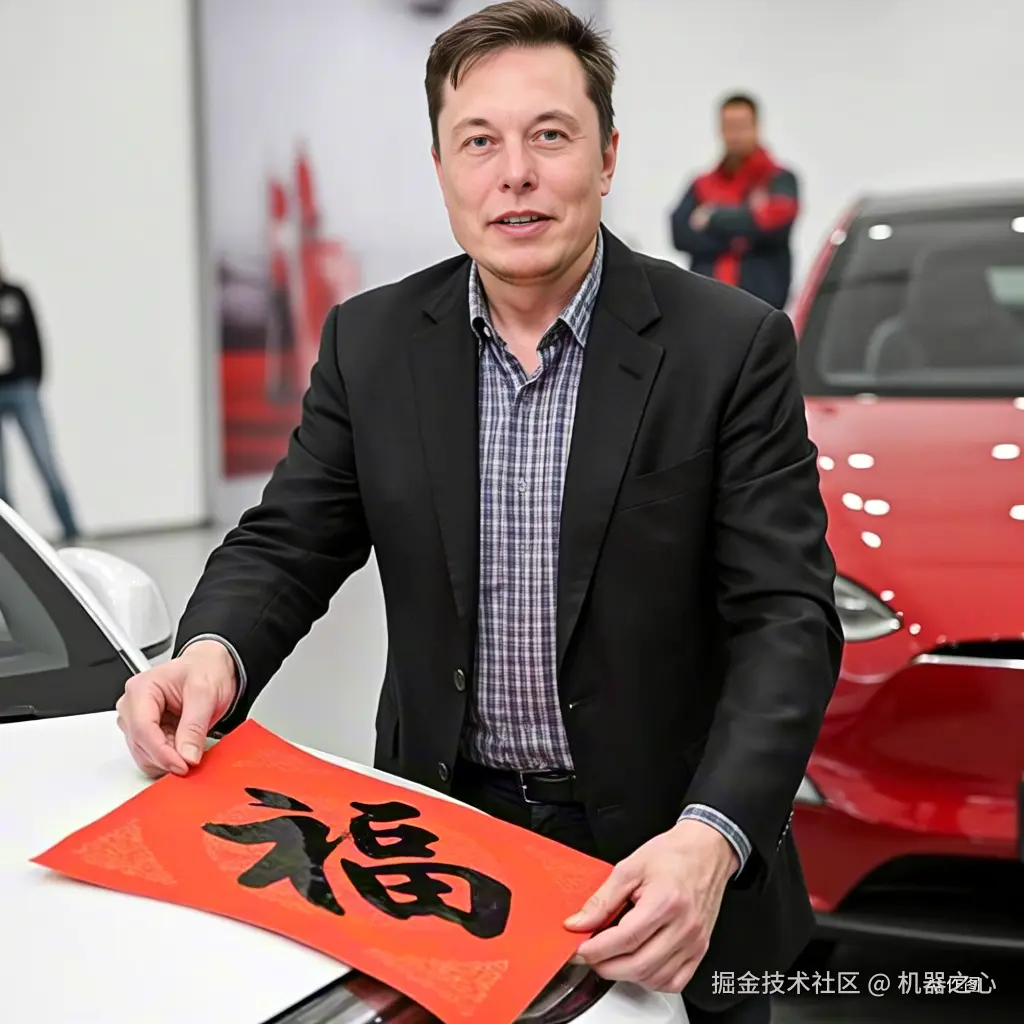比如,让「硅谷钢铁侠」马斯克给特斯拉贴福字: