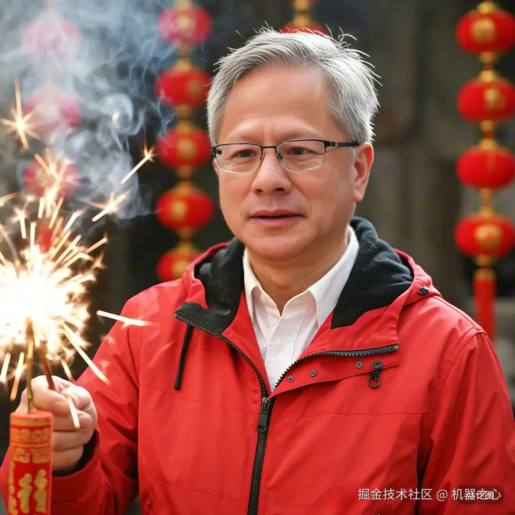 或者让「皮衣刀客」黄仁勋身穿喜庆的衣服点鞭炮: